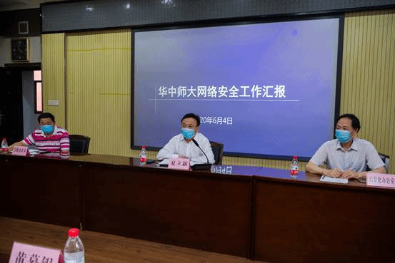 6月4日下午,湖北省公安厅、教育厅领导黄幕银政委、翟培甫部长一行到华中师范大学开展网络安全监督检查工作,工作汇报会在行政楼二楼会议室举行,副校长夏立新出席,相关部门负责人参加。信息化办公室主任吴俊文主持会议。