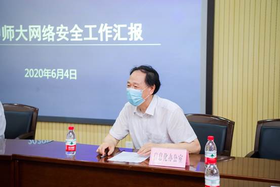 紧接着,信息化办公室副主任吴小平介绍华中师范大学网络安全工作情况。之后,网络安全监督检查组领导开展现场访谈及核查。
