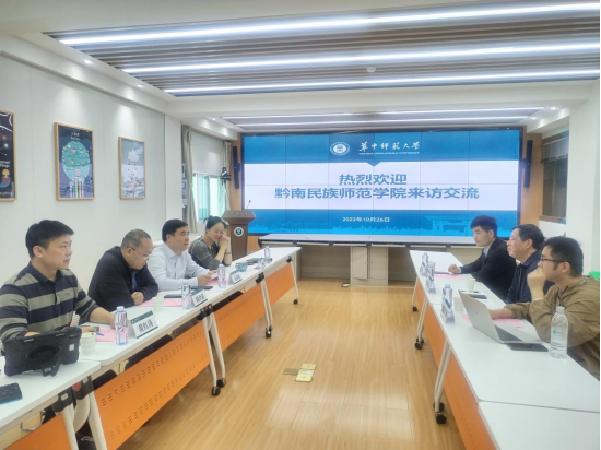 2023年10月26日上午,黔南民族师范学院实验中心主任郭勇一行三人来我校进行专题调研和座谈。信息化办公室主任吴绍靖,副主任刘爱民、谭冬霞,刘合富等老师参加座谈。座谈交流会在田家炳楼8楼指挥大厅举行,由吴绍靖主持。