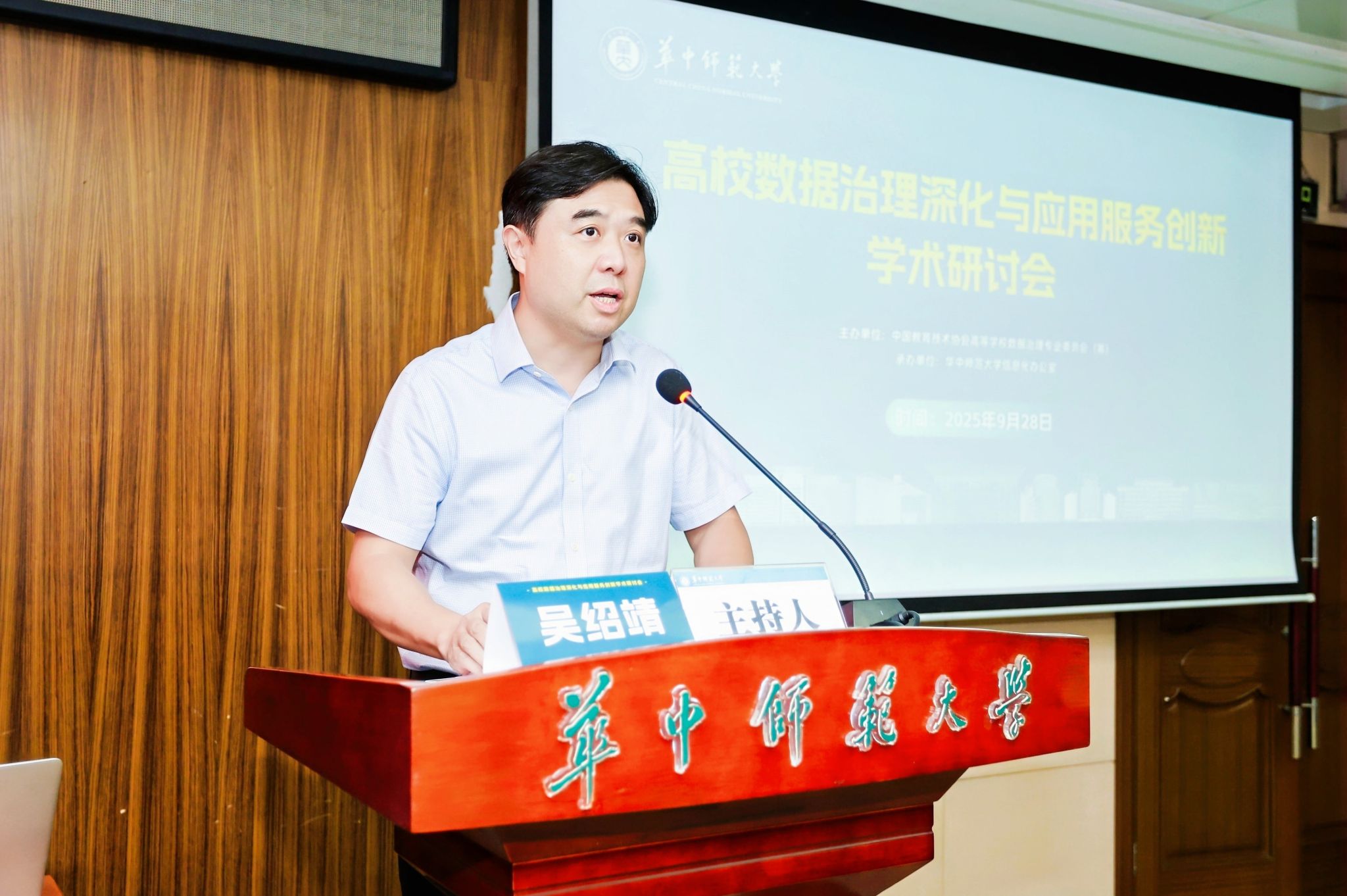 9月28日,“高校数据治理深化与应用服务创新”学术研讨会在我校逸夫国际会议中心一楼报告厅举行。本次会议由中国教育技术协会高等学校数据治理专业委员会(筹)主办、我校信息化办公室承办,旨在贯彻国家教育数字化战略,破解高校数据治理难题,推动数据治理体系深化建设与应用服务能力协同创新,为“十五五”时期高校数据能力建设汇聚智慧。中国教育技术协会高等学校数据治理专业委员会(筹)主任、我校李鸿飞副校长,专委会(筹)秘书长黄石平出席,全国 9 省(自治区)48 家高校信息化部门主要负责人参会,研讨会由我校信息化办公室主任吴绍靖主持。