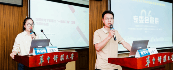 在专家报告环节,西安电子科技大学信息网络技术中心主任郭涛围绕教育数据生态构建系统解析高校数字化转型路径与数据治理应用成效,从数据采集规范、安全存储管理到价值应用转化全流程拆解操作要点,为高校挖掘数据潜在价值、推动业务与数据深度融合提供可落地参照方案。华中科技大学网络与信息化办公室副主任吴驰立足本校多年治理经验,全面梳理数据治理从顶层规划设计、制度体系搭建到基层院系执行落地的全链条工作机制,针对跨部门数据协同中的沟通壁垒、权责划分等实践难点,详细分享问题解决路径与协同工作模式,为兄弟院校规避治理风险、提升执行效率提供经验借鉴。希嘉公司吴迎春经理详细解读高校 “一张表工程”建设框架、实施步骤与落地要点,为高校破解数据标准不统一、报表重复填报等实际问题提供专业化解决方案。中国教育技术协会高等学校数据治理专业委员会(筹)秘书长黄石平,详细介绍专委会筹备背景、组织架构、招募对象及相关权益,向与会高校发出诚挚入会邀请,倡议各校携手合作,共同推动我国高校数据治理工作迈向有序推进的新发展阶段。