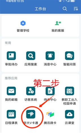 进入“企业微信的工作台”→华大V卡通→出示虚拟卡二维码支付。如下图: