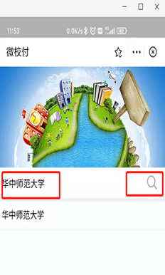 第二步  进入“微校付”,搜索“华中师范大学”。