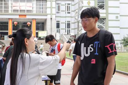 学生参与“你我携手共建智慧校园”的现场采访活动