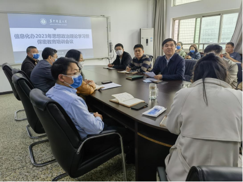 4月28日下午,信息化办公室在田家炳楼八楼会议室举行2023年思想政治理论学习暨保密教育培训会议,全体在职员工参加,会议由吴绍靖主任主持。