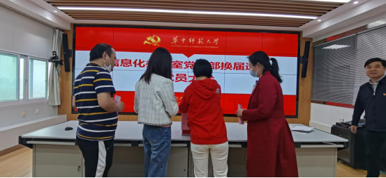 2023年5月11日上午,华中师范大学信息化办公室党支部换届选举大会在田家炳楼八楼指挥大厅进行,全体在职党员参会,退休党员吴俊文、罗时元、鲍裕功出席,会议由党支部书记吴绍靖同志主持。会议伊始,由刘合富清点党员出席人数,人数确认完毕后全体起立,奏唱国歌。