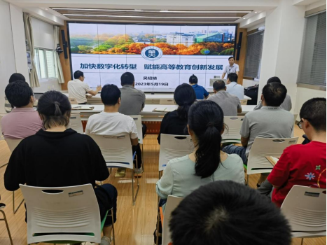 接着,吴绍靖书记作支部书记讲党课系列专题报告,吴绍靖书记以《推进教育数字化•助力教育高质量发展》为主题从机遇与挑战、研究与实践、变革与展望三个方面进行介绍。他指出,互联网、大数据、云计算、人工智能、区块链等数字技术创新活跃,数据作为关键生产要素的价值日益凸显,深入渗透到经济社会各领域全过程,新一轮科技革命和产业变革深入发展,数字经济成为发展的新引擎,数字经济发展必然对数字教育提出要求,教育数字化已成为国内外的共识,人才培养体系亟待重构。他以华中师范大学为例,从数字化助“学”、数字化助“教”、数字化助“管”、数字化助“研”四个维度介绍了学校推动教育数字化转型的相关举措、成效。他谈到,教育信息化建设向纵深发展,以“数字化课堂”形式构建开放便捷的教学环境、赋能高等教育创新发展成为必然趋势,信息化工作要以业务融合为入口,积极推动业务数字化,不断拓展数据维度,构建更加全面的数据体系,努力促进学校建设,助力学生全面发展。
