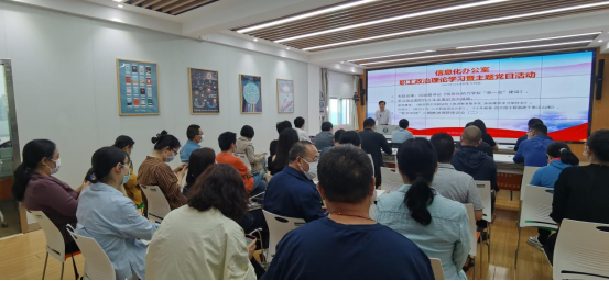 5月25日,信息化办公室党支部在田家炳楼八楼指挥大厅举行全体教职工思想政治理论学习,会议由信息化办公室党支部书记吴绍靖主持。本次学习的主要内容是:集体聆听学习冯淑霞校助讲述专题党课;学习领会新时代十年发展的伟大成就,推进“数字华师”二期工作调研。