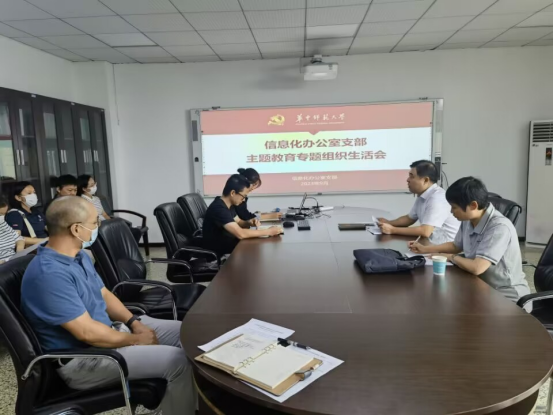 2023年9月12日上午10:00,信息化办公室党支部在田家炳楼八楼会议室开展主题教育专题组织生活会,该会议以党员大会的形式进行,冯淑霞校助及信息化办全体在职党员参加,会议由吴绍靖同志主持。