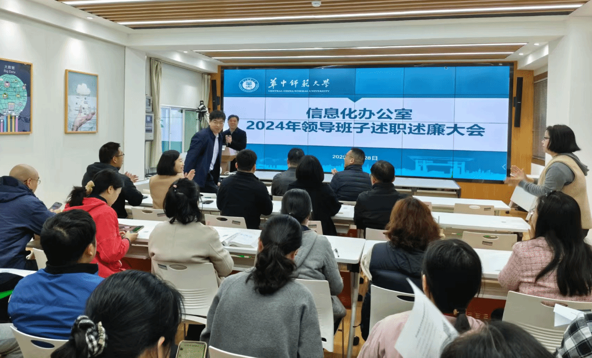 此次学习活动分两个阶段进行。第一阶段为信息化办公室全体教职工的政治理论学习。通过观看视频新闻,全体员工共同深入学习习近平总书记的重要讲话以及2025年全国两会精神。视频中,习近平总书记的重要指示令人振奋。在参加江苏代表团审议时,总书记着重强调,经济大省应勇挑重担,为全国发展大局作出更大贡献;在看望参加政协会议的民盟民进教育界委员时,总书记明确指出要强化教育对科技和人才的支撑作用,全力营造人才辈出、人尽其才、才尽其用的浓厚氛围;在除夕解放军和武警部队代表团全体会议上,总书记强调要落实高质量发展要求,确保实现我军建设“十四五”规划圆满收官。随后,信息化办公室领导班子成员依次上台进行述职述廉汇报,总结过去工作成绩,剖析存在问题,并规划未来发展路径,展现出对工作高度负责的态度与担当。