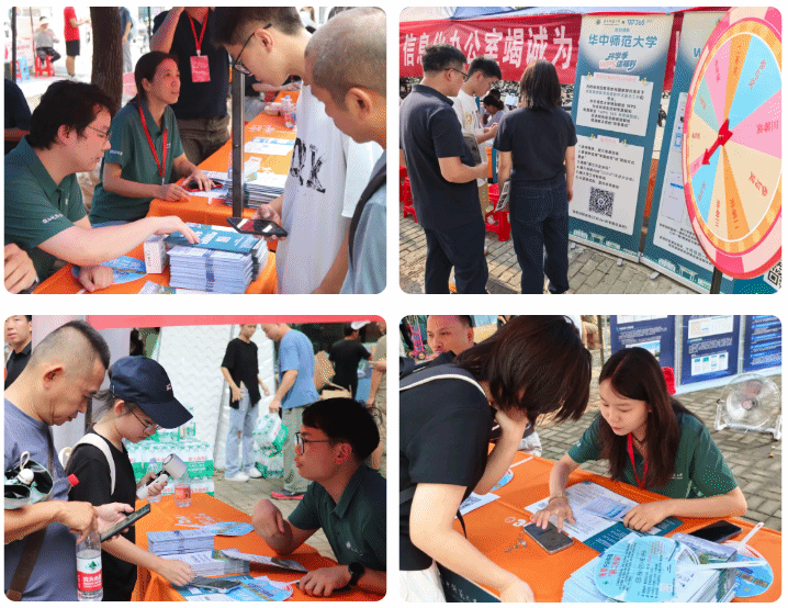 支部党员主动担当,筑牢服务“桥头堡”。活动现场设立 “校园卡服务” “校园网服务” “信息化服务” 及 “WPS互动服务” 四大专区,信息化办公室工作人员通过现场操作指导、发放《2025年校园信息化服务指南》、“一对一”答疑等形式,重点帮助新生熟悉校园网、企业微信、一卡通、线上报修等高频服务内容。此外,活动倡议新生通过关注 “CCNU信息化办公室”微信公众号便捷获取指南内容,快速融入数字化校园生活。活动累计接待新生及家长咨询1500余人次,实现信息化使用问题的“现场响应、即时解决” ,以精准、温暖的服务有效提升了新生的数字化体验感与获得感。