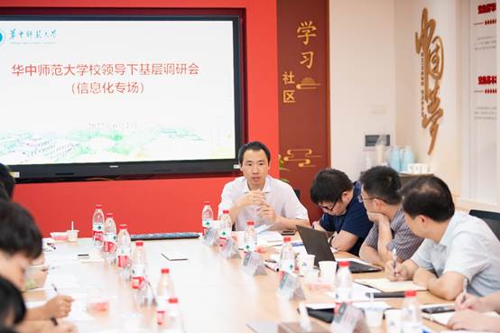 校领导下基层信息化专场调研会以师生午餐会的形式展开,校领导、信息化办公室领导班子与师生代表面对面共谈信息化建设应用情况,现场气氛轻松融洽。南湖综合楼入驻学院教师代表吴绍靖、舒江波、石义金、罗昌银4位老师表示,数字华师建设已取得重大进展,网络流畅性高、智慧教室性能好。他们从工作体会出发、从师生谈话出发,提出了校园网信号差、登录难,线上资料库种类少,师生反馈渠道窄等问题。学生用户代表们从生活出发、从身边出发,提出校园网稳定性差、速度慢,校医院线上挂号和线上预约功能急缺,水卡和校园卡功能未整合,企业微信应用培训有待加强和个性化界面设置功能缺失等问题。