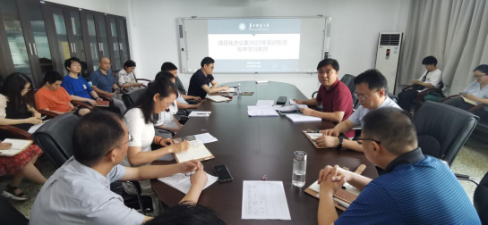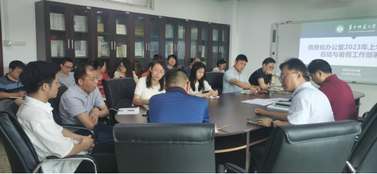 7月10日上午10:30,华中师范大学信息化办公室在田家炳八楼会议室召开2023年上学期工作总结与暑期工作部署会,全体在职职工参加会议。本次会议由吴绍靖主任主持,会议分为两个阶段进行。