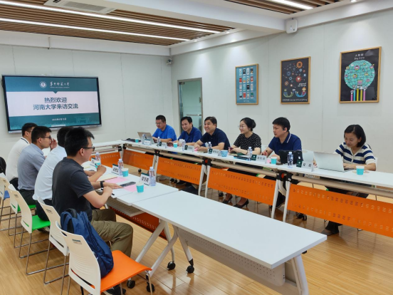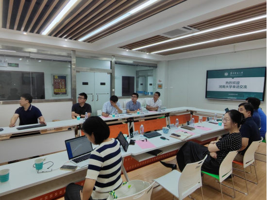 2023年9月15日上午,河南大学信息化办公室赵艳忠副主任一行四人到我校调研。座谈交流会在田家炳楼8楼指挥大厅举行,信息化办公室主任吴绍靖,副主任谭冬霞、刘爱民,黄红涛、夏欣等相关业务部门老师参会。会议由吴绍靖主持。
