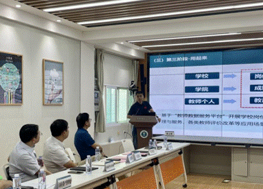 第二阶段会议为学校第五次教育数字化转型工作推进会,相关人员汇报了数据治理阶段性成果报告。信息化办公室许婷演示了教师数据服务平台的具体应用操作,为教师提供便捷的数据服务体验。随后,人事部副部长曹阳介绍了基于该平台开展的学校管理与服务、教师评价改革等应用场景化。党委学生工作部副部长鲍新龙展示了学生事务服务平台,该平台为学生事务管理提供强有力的技术支持。最后,国有资产管理处副处长黄金山汇报我校“资产一张表”建设推进计划和核心业务建设内容,为资产管理的数字化转型提供清晰的路线图。