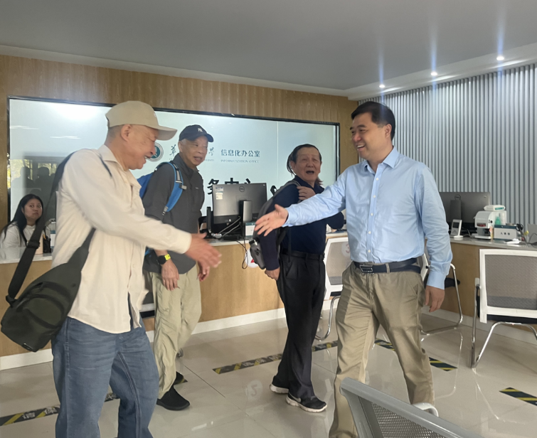 一场秋雨过后空气格外清新,蓝天白云、风和日丽,老同志们兴高采烈地来到校务服务中心大厅,大家见面后格外亲切,互相问候。信息化办公室主任吴绍靖向老同志们进行问候和交谈,他简短地介绍了学校信息化工作情况,询问老同志的身体状况和生活情况,鼓励他们多出去走走,欣赏美景愉悦身心。随后吴主任和办公室主任成雯将老同志们送上车,并叮嘱随行工作人员照顾好老同志,确保安全,让老同志们的游玩开心愉快。
