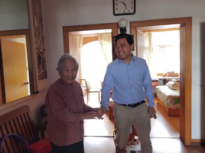 每至一处,吴主任一行人都耐心地与老同志们进行交谈,询问老人的生活状况和身体健康情况,了解他们生活中的困难,叮嘱老人们保重好身体,为他们送上节日问候和诚挚祝福。同时吴主任对退休老同志也表示感谢,感谢94岁高龄的张克老师将自己多年保存的工作记录、图书、照片等资料捐给单位,感谢90岁高龄的黄巧琴老师亲手编制精美小工艺品赠送给单位职工,他希望老同志们在保重身体的同时老有所为,继续发光发热。