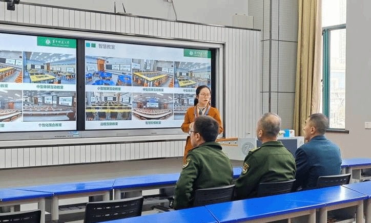 座谈会上,吴绍靖主任首先对陆军工程大学训练基地代表一行的到来表示热烈欢迎。随后,他系统介绍了信息化办公室在智慧校园建设中的战略定位与核心职能,详细剖析了智慧教室从规划建设、创新应用到示范推广的实践路径,并重点讲解了新技术在服务师生教学、科研方面的具体应用。