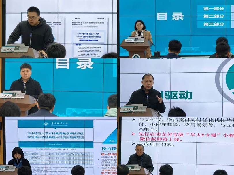 大会第二阶段部门考评环节中,信息化办公室各部门主管对2024年部门工作分别进行汇报。网络运行中心唐亦非、综合管理办公室成雯、数据系统中心黄红涛、校务服务中心解攀科、教育技术中心涂乐、校园卡管理中心刘合富等六位部门负责人,分别系统总结了 2024 年本部门的工作成效。党委组织部、党委学生工作部、人事处、美术学院相关领导及用户委员会主任委员担任此次考评的评委。