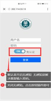 2.自动弹出登录界面。输入账号和密码,打开免认证按钮。