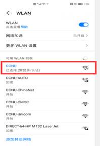 1.打开手机WiFi设置,点击连接“CCNU”信号源。