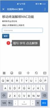 2.在下图所示的条形框中输入需要解绑的账号(学号),点击“解绑”按钮即可解绑成功。