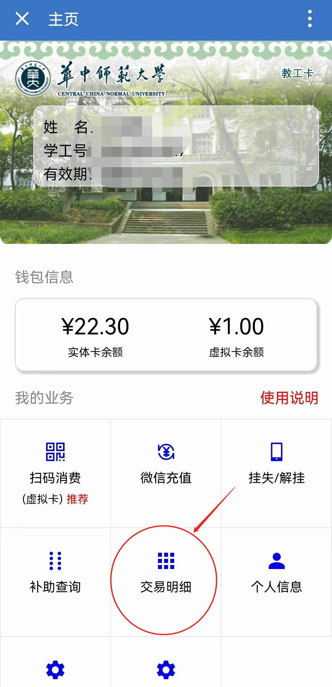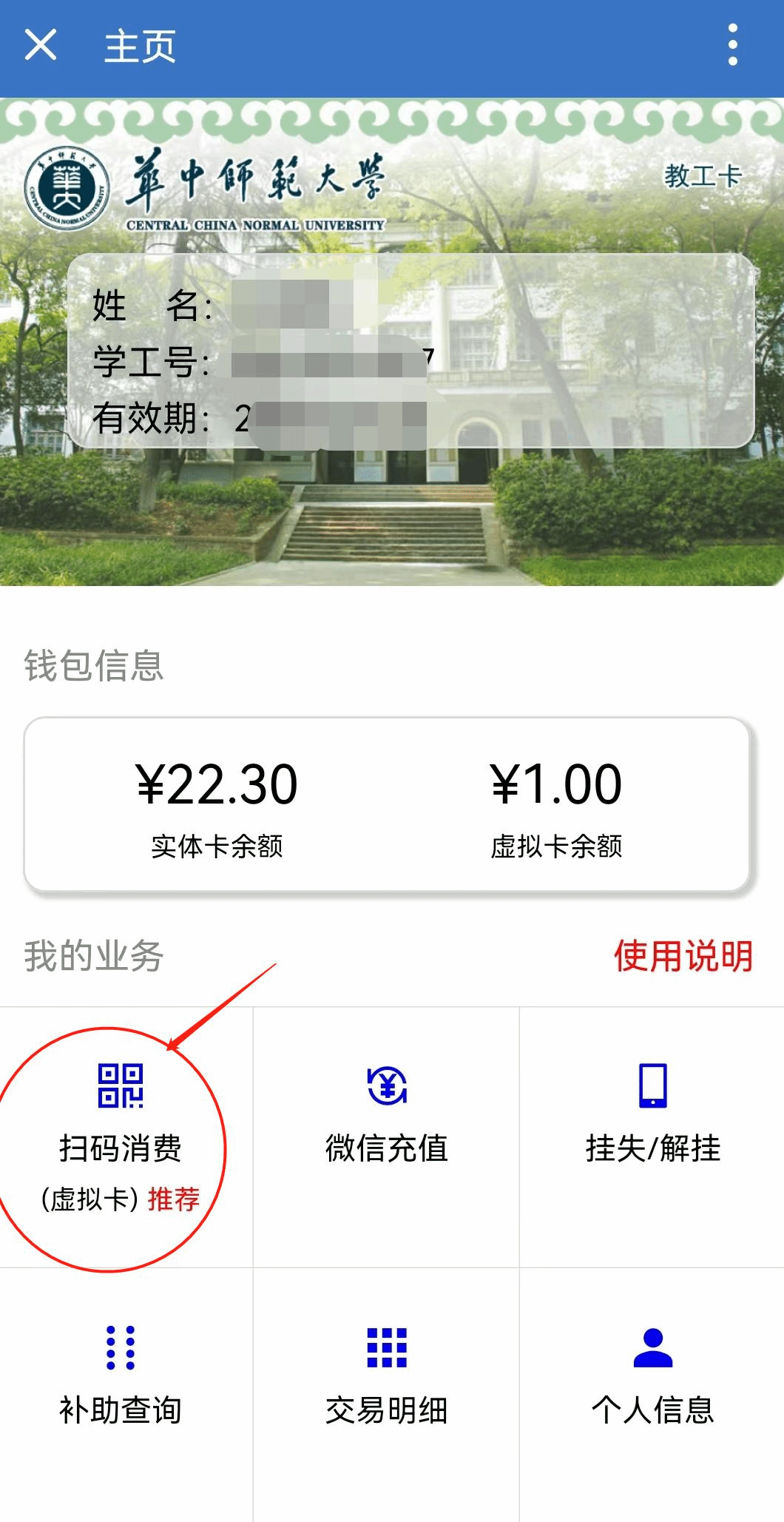 虚拟卡余额查询方法:进入“华大V卡通” →在钱包信息中可以查看虚拟卡和实体卡余额。
