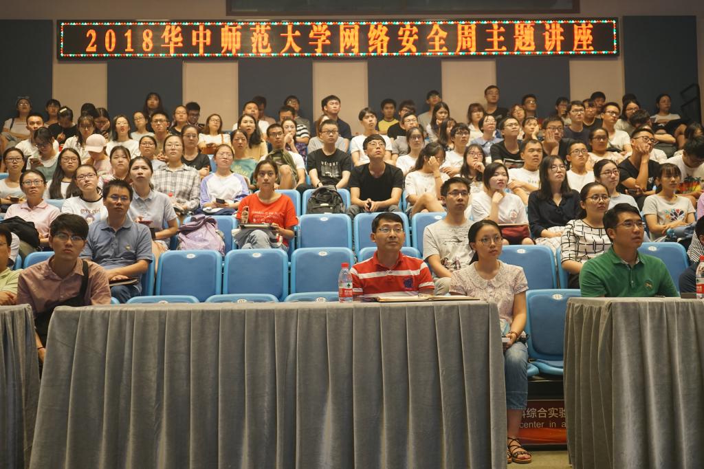 9月20日下午,2018年华中师范大学网络安全知识专题讲座在九号楼六楼演播厅举行。此次专题讲座以“网络安全为人民 网络安全靠人民”为主题,校内各单位信息化分管领导、信息系统管理员和部分学生近150人参会。