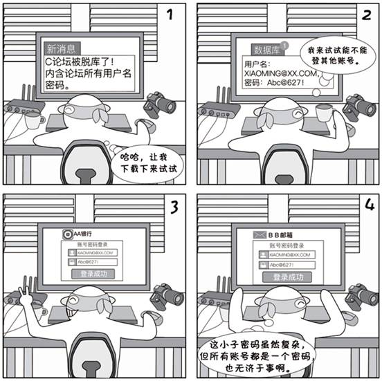 很多人各个网站的用户名、密码相同,这样黑客用被泄露网站的密码登陆其他网站很有可能会成功。每个网站都设置不同的密码可能不现实,那就可以对密码分级管理。